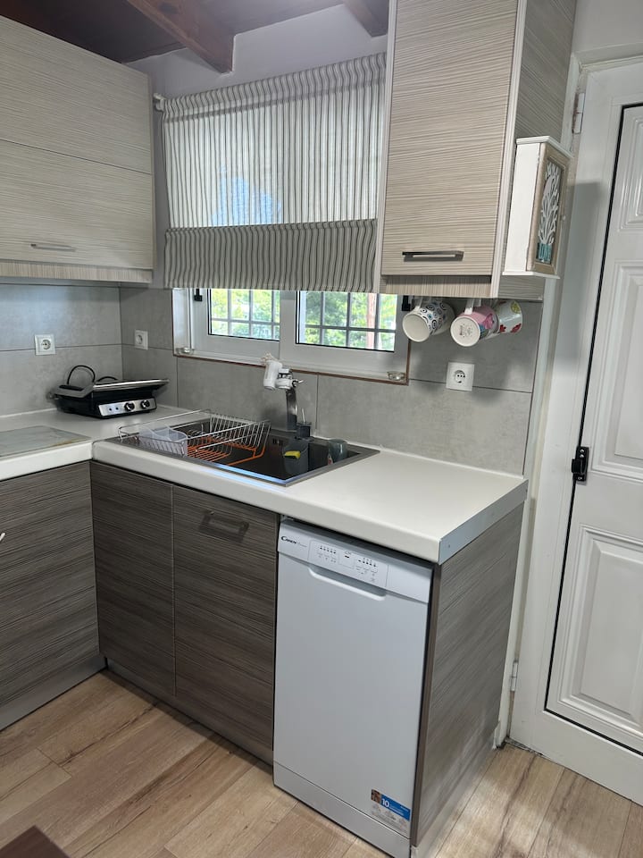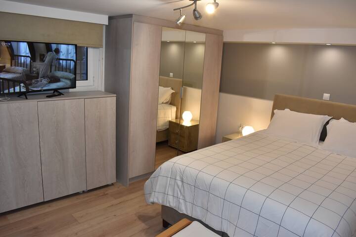De grote kamer heeft een comfortabel tweepersoonsbed met een COCOMAT-matras en een ondervacht, de 2e kamer biedt een eenpersoonsbed met een open keuken en een eethoek.