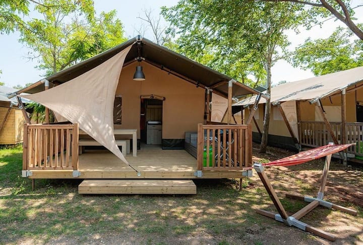 Geniet van de perfecte glampingervaring in onze comfortabele, volledig uitgeruste tenten, omringd door de natuur. Elke tent heeft een gezellige leefruimte, keuken en privé terras voor een ontspannen verblijf. Ideaal voor gezinnen en stellen die willen ontsnappen aan de drukte. Verken de prachtige omgeving met wandel- en fietsmogelijkheden. Ontdek de magie van glamping bij Villatent, waar comfort en avontuur samenkomen!