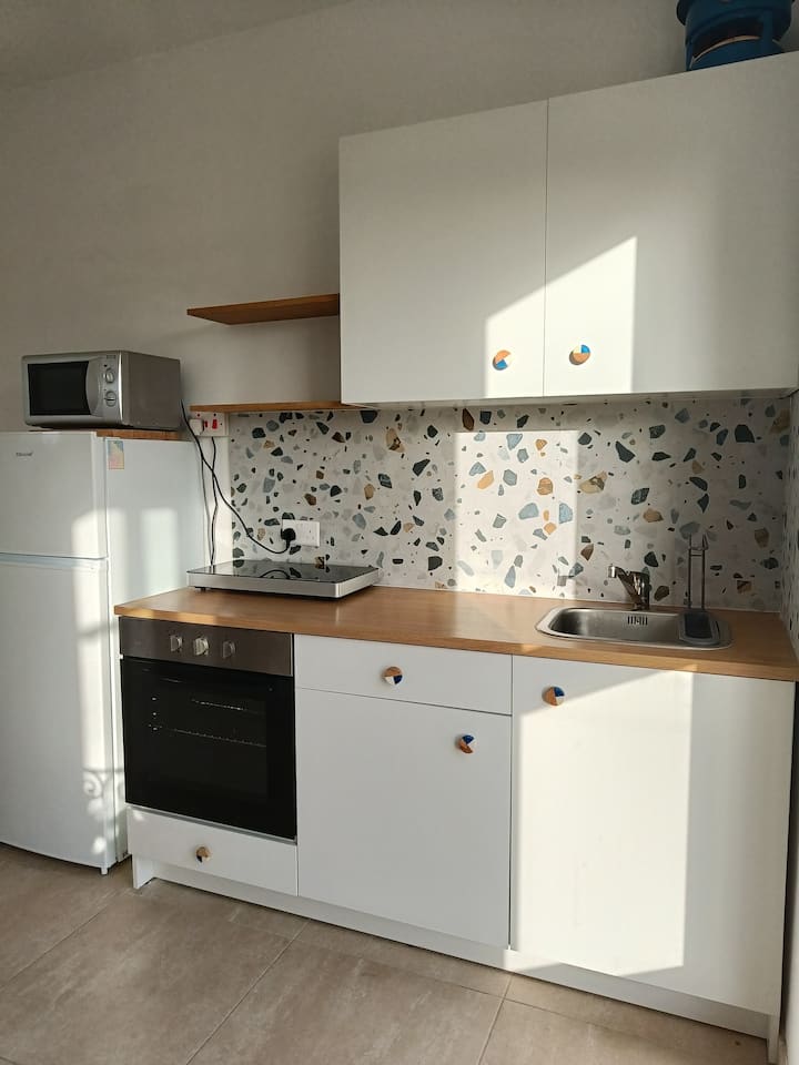 Lichte ruime kamer + eigen keuken en badkamer