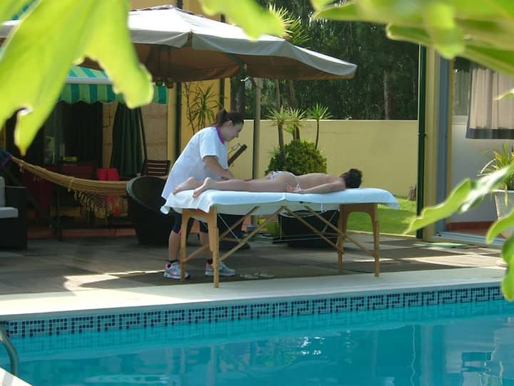 Dit is een van de weinige accommodaties in de omgeving met een zwembad.