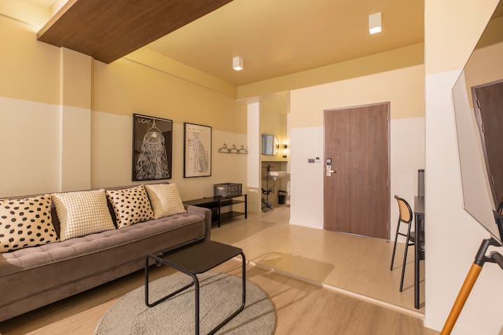 Betaalbaar-luxe Theme Boutique Hotel in Phayathai. We combineren de voorspelbaarheid van een hotel met de gezelligheid van een Airbnb en bedienen je helemaal - geen verwarrend sleutelkastje en sleutelkaart, 24-uurs actieve ontvangst via online chat: WhatApps, WeChat en Airbnb, ook virtuele conciërge.