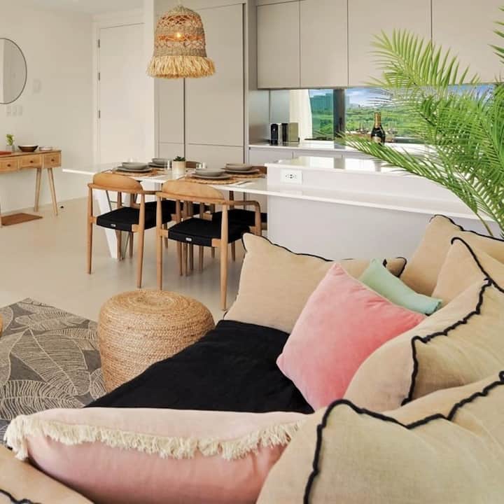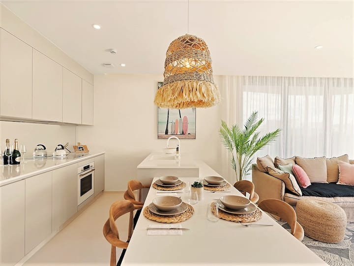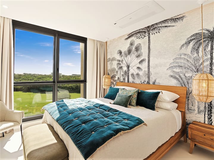 Welkom in ons luxe appartement met één slaapkamer, gelegen op de derde verdieping, met een panoramisch uitzicht op de golfbaan en de oceaan en een prachtig balkon. Bereid je voor om jezelf onder te dompelen in een wereld van weelde en rust, waar elk detail zorgvuldig is ontworpen om een buitengewoon toevluchtsoord aan de kust te creëren.