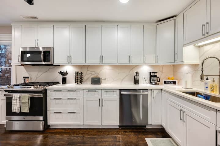 Geniet van ons fris, gerenoveerde volledig gevulde huis! Dit topappartement met twee verdiepingen is gelegen in Lincoln Park tussen North Ave en Armitage Ave en biedt alles wat je nodig hebt en meer bij een bezoek aan Chicago. De locatie en buurt zijn moeilijk te verslaan als het gaat om veiligheid en reputatie: