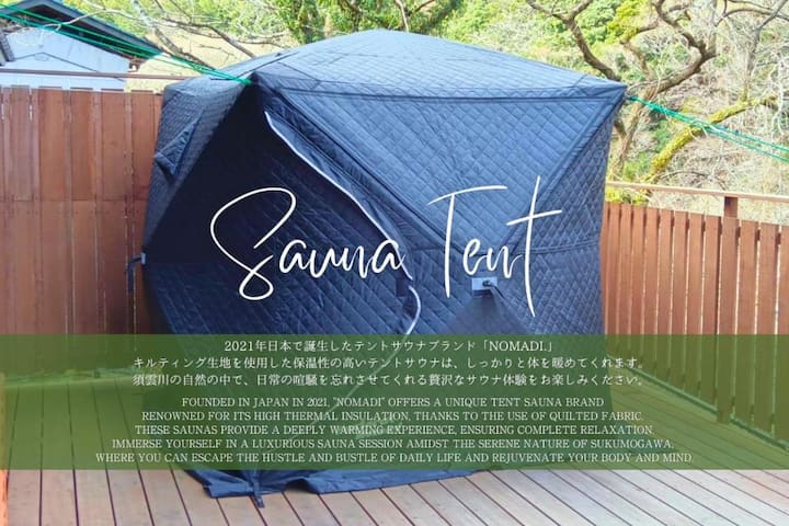 Geniet van een unieke tijd met familie en vrienden op het houten terras met uitzicht op de rivier de Sukumo en Mount Asama, ontspan in de sauna of met een barbecue.