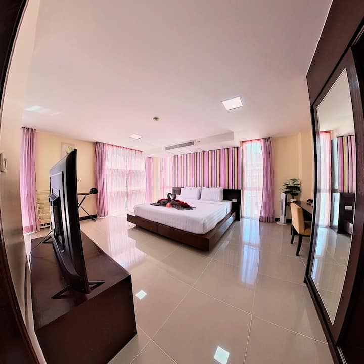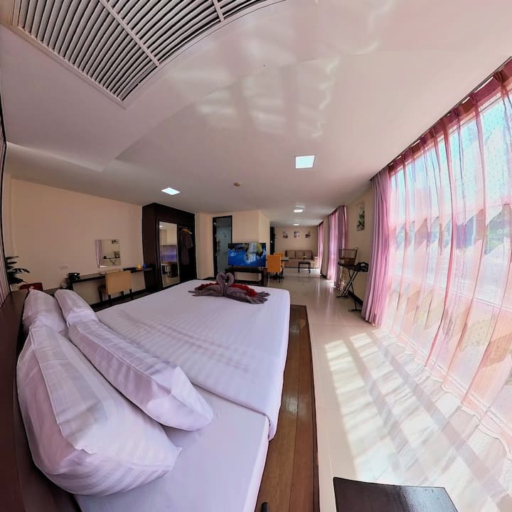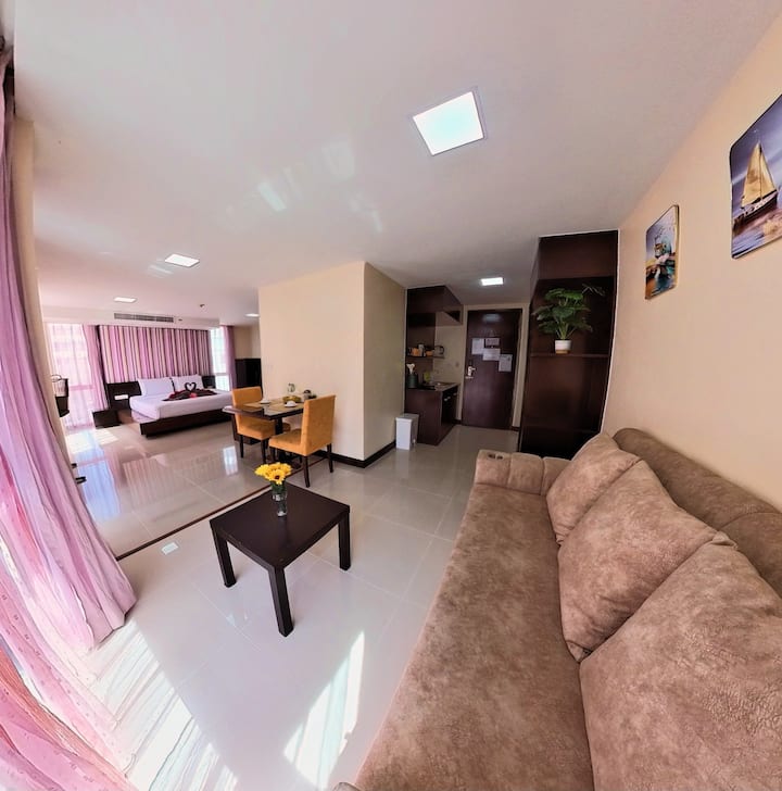 Rustige studio • 55" tv, slaapbank, zwembad • Patong