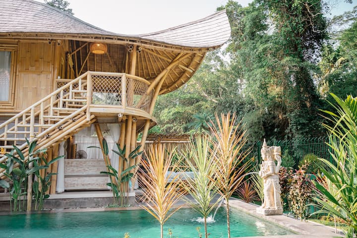 Bamboe villa aan de rivier in Ubud