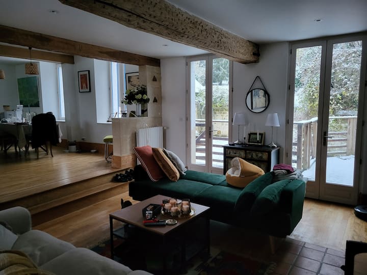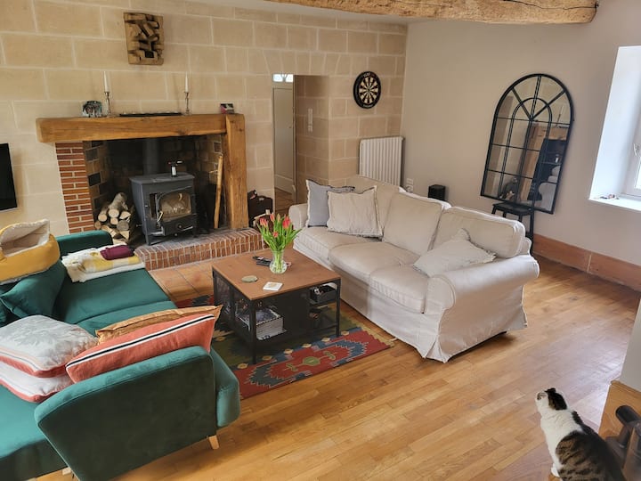 Op zoek naar een thuis ver van huis? Deze gerestaureerde boerderij uit het midden van de 19e eeuw is een zeer comfortabele en smaakvolle woning met 3 slaapkamers en 2 badkamers met een onafhankelijk kantoor en een gastronomische keuken die je zeker zal behagen. Verschillende bijgebouwen omringen een grote verharde en gesloten binnenplaats die leidt naar een uitgestrekt gazon en daarbuiten, het bos. Alle benodigde winkels zijn vlakbij. Rust en stilte verzekerd. De regio komt tot leven in de zomer en heeft veel dingen om te doen en zien.