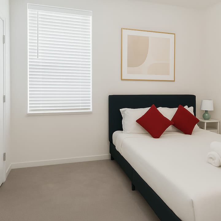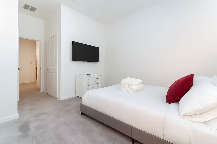 De slaapkamer is voorzien van een queensize bed en een eigen badkamer met ligbad in je kamer. Terwijl je ontspant, vermaakt je je met je eigen 50-inch Smart Roku-tv, waar je kunt blijven kijken naar je favoriete programma's die je thuis hebt achtergelaten.