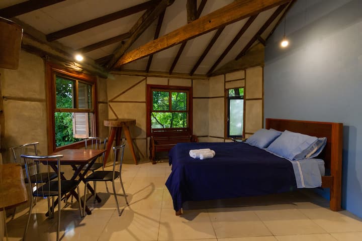 Mozambikaanse hut, aparte slaapkamer en keuken.