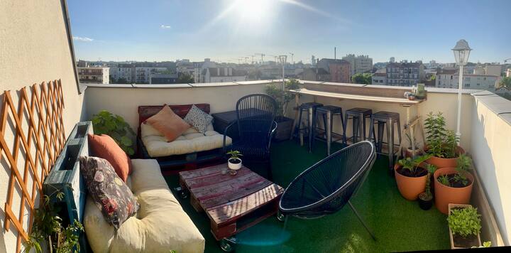 Atypisch duplex in de buurt van vervoer met dakterras