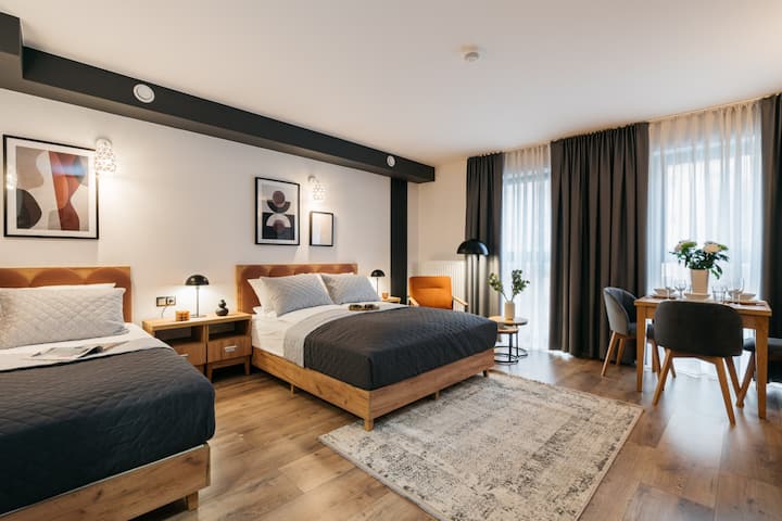 Hallo! Wij zijn StayLab, een team van professionals die unieke accommodaties aanbieden in heel Polen. We kunnen niet wachten om je te ontvangen en je uit te nodigen om geweldige plekken te verkennen! Orso Room & Apartments StayLab zijn unieke plekken op de kaart van Warschau, ingericht en ontworpen met aandacht voor elk detail. Wij bieden 28 uniek ingerichte appartementen ter beschikking van de gasten.