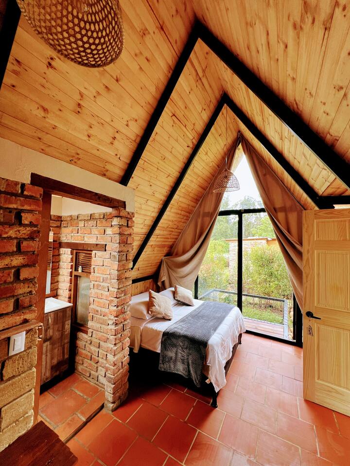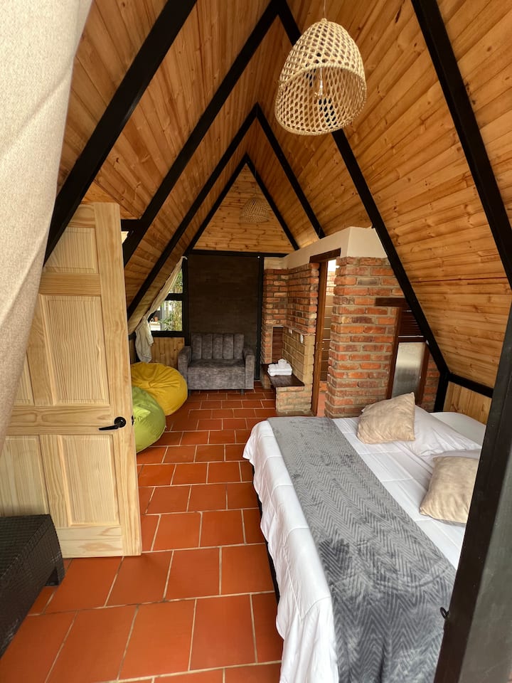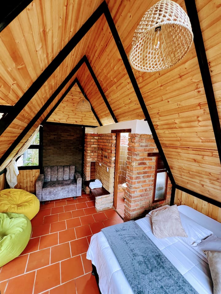 Kamer in een houten huisje