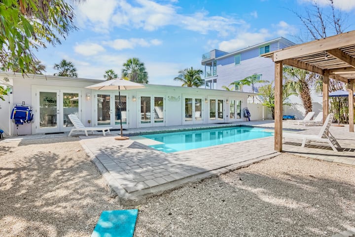 Bijgewerkte woning met verwarmd zwembad! 1 minuut naar het strand!