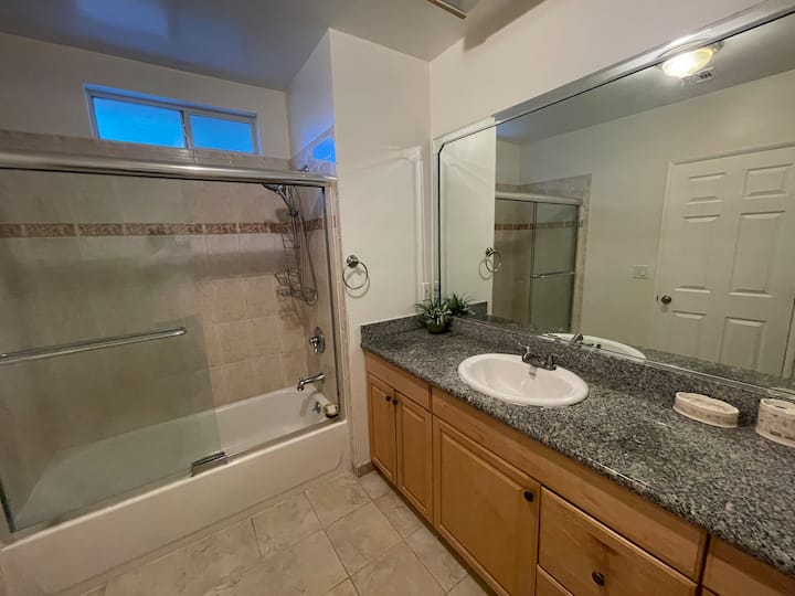 Deze ruimte heeft een badkamer die met je kamer verbonden is.