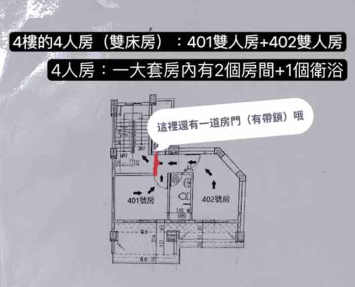 Donggang Town / 4-persoonskamer op de 4e verdieping / 2 tweepersoonsbedden / Dream Net B&B / rond het eiland, naar Xiaoliuqiu