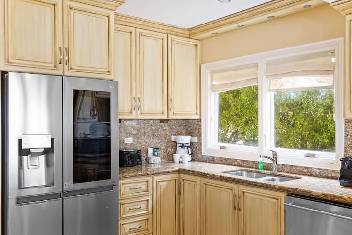De volledig uitgeruste keuken houdt zich aan het eigentijdse luxe ontwerp van de hele villa, terwijl het ook beschikt over geavanceerde apparaten waarmee je heerlijke maaltijden kunt bereiden als je thuis dineert.
