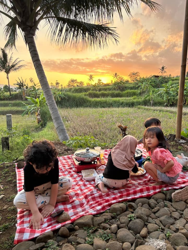 gezellige kamer met uitzicht op de rijstvelden!