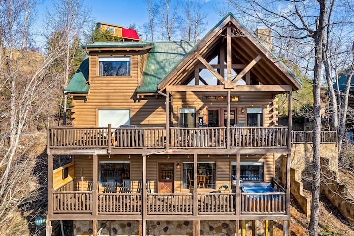 Deze magische, enorme hut is gelegen aan de zeer gewilde Settler 's Ridge Way op de top van Sky Harbor! Perfect verbonden met de uitloper, de weg die tussen Pigeon Forge naar Gatlinburg loopt.