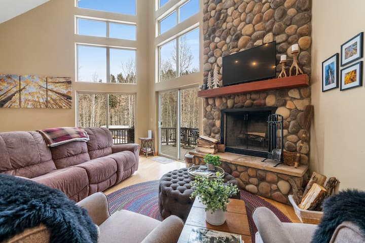 5 minuten naar skiën, bubbelbad, slaapplaatsen voor 14, open haard!
