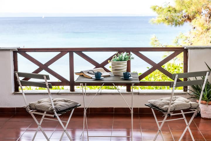 Deze woning ligt direct aan Nikiti Beach.