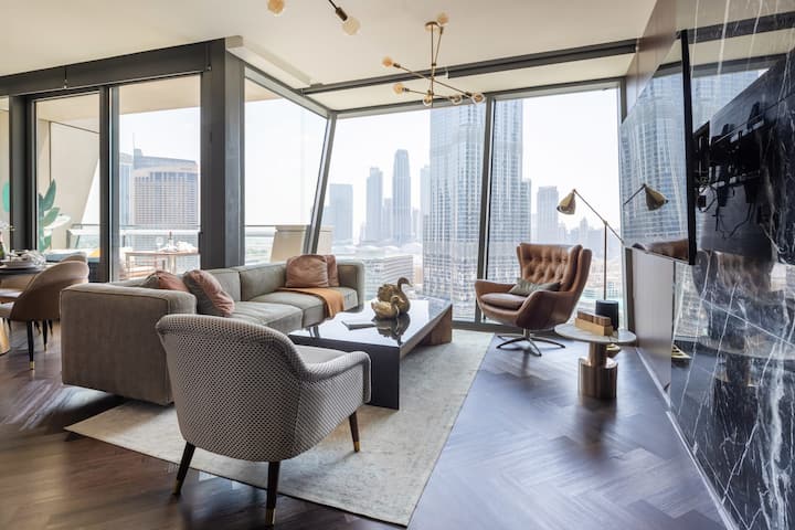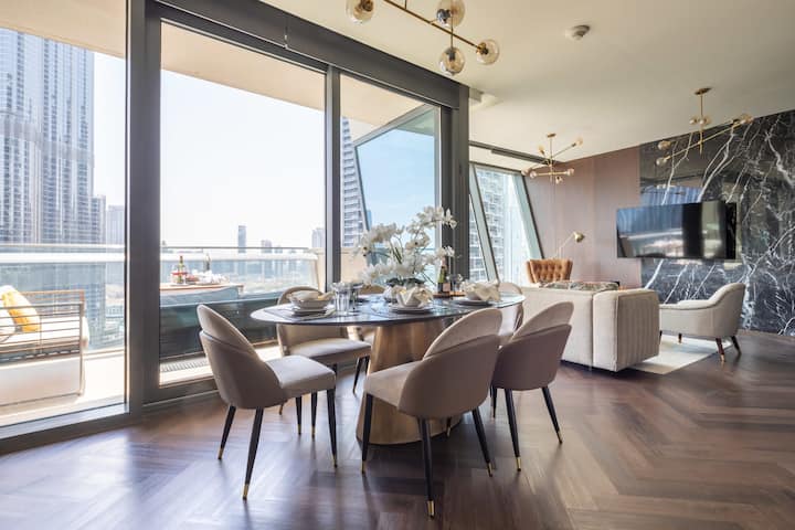 Luxe 2BR + volledig uitzicht op Burj Khalifa!