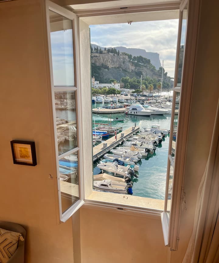 Met uitzicht op het kasteel en Cap Canaille, 100 meter van het strand.