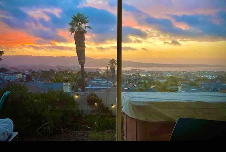 Uitzicht op de baai 's nachts en overdag met bubbelbad