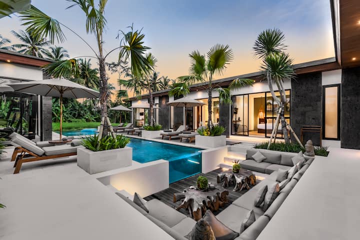 Welkom bij Villa Dulcedo Vitae, een toevluchtsoord met vijf slaapkamers in het serene landschap van Pejeng Kawan. Deze villa wordt omgeven door uitgestrekte rijstvelden en de weelderige jungle van Ubud en biedt een perfect toevluchtsoord voor gezinnen of groepen die op zoek zijn naar een mix van comfort en elegantie.