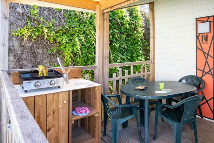 Welkom bij Vendée, camping maeva Club Les Dinosaures**** Hey! Deze viersterrencamping ligt op ongeveer 800 m van de Atlantische kust en op 10 minuten van Les Sables-d'Olonne. Het biedt een uitzonderlijke omgeving tussen bos en oceaan, in het hart van een adembenemende natuurlijke omgeving. Ideaal voor een gezinsvakantie en combineert comfort, vitamineanimatie en moderne voorzieningen, allemaal in een warme en vriendelijke sfeer.