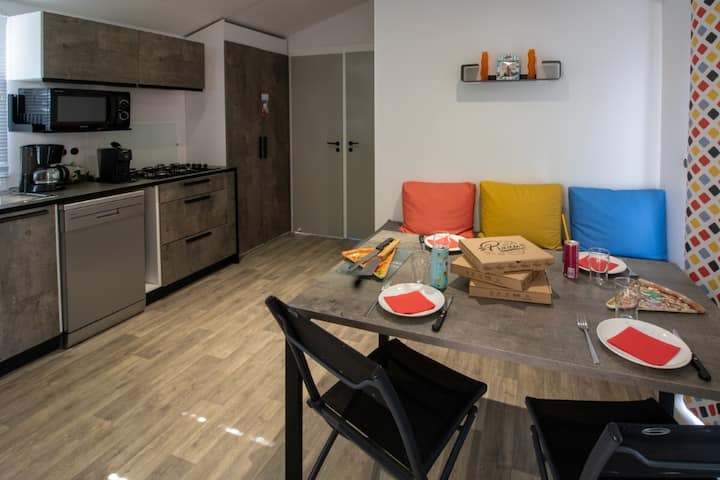 Rustig huisje 3 kamers voor 4 personen, van ongeveer 27m2 met:
