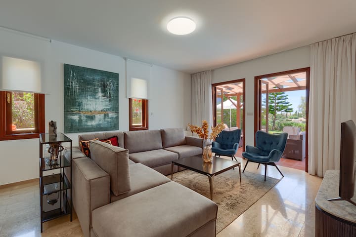 Deze luxe villa met 3 slaapkamers ligt bij Aphrodite Hills op het oostelijke plateau van het resort en biedt uitzicht op de dramatische ravijn.