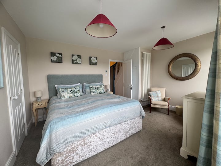 - 3 badkamers:- 2 x ensuite doucheruimtes, 1 x familiebadkamer met regendouche boven het bad