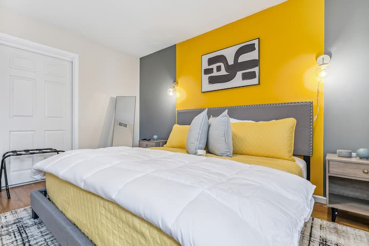 Duplex in West Wichita: kingsize bedden, 75 inch tv en schommel