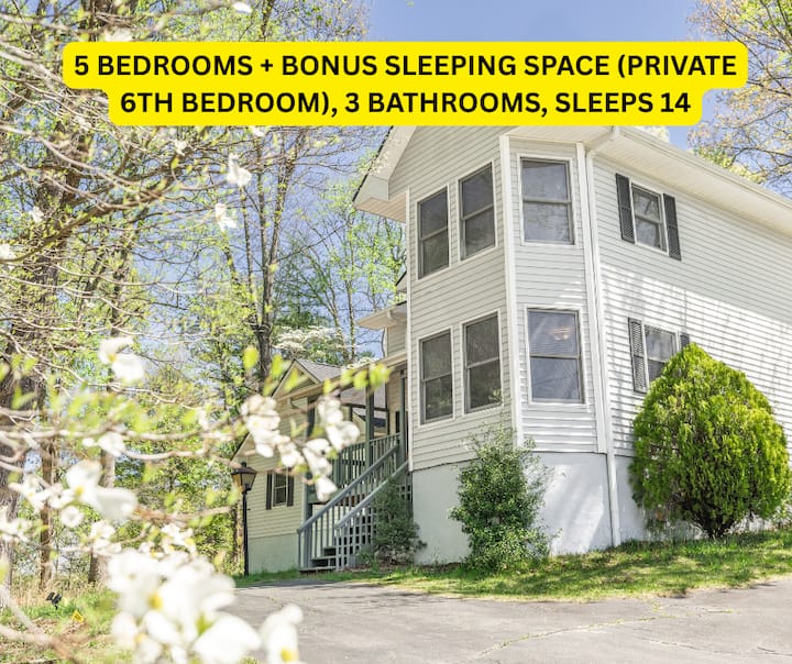 Geniet deze winter in de Blue Ridge Mountains in de Woodside Retreat, een volledig gerenoveerde bergwoning met 5+ slaapkamers en 3 badkamers in de buurt van het centrum van Hendersonville. Op slechts enkele minuten van de stad en dicht bij de luchthaven Asheville, is het ideaal voor gezinnen of groepen. Geniet van een open haard, bubbelbad en een speelkamer op koude nachten en breng je dagen door met het achtervolgen van bevroren watervallen, het proeven van wijnen of bieren of het verkennen van de winkels van Hendersonville en de feestelijke vakantielichten van Asheville.