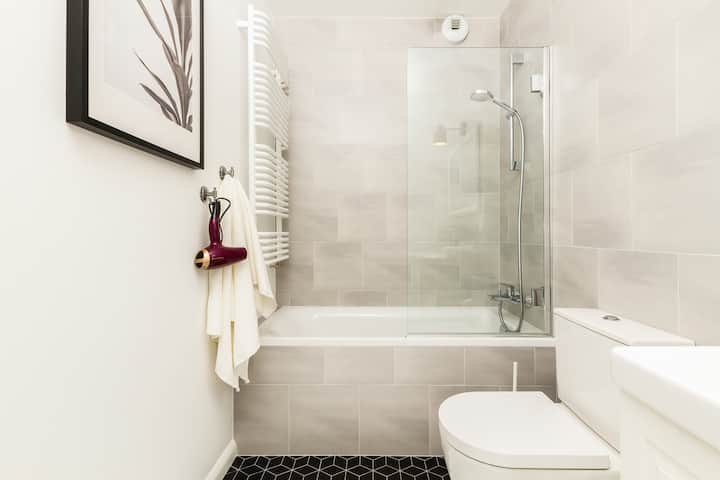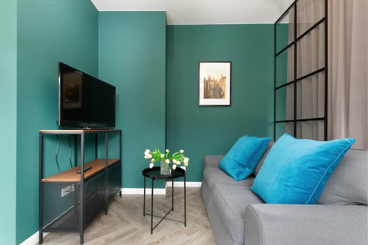 Rajska 8 | Donkergroen en grijs appartement | Bad
