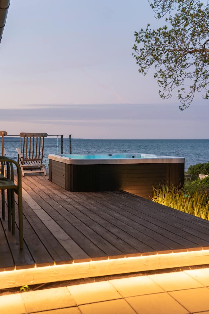 Vakantiehuis aan het strand met nieuwe jacuzzi in de buitenlucht