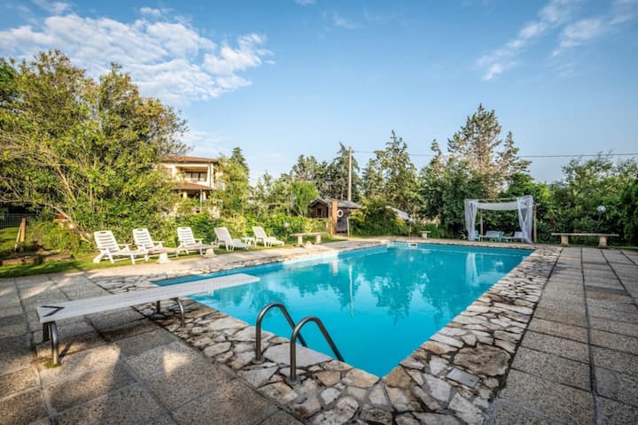 Dit is een van de weinige accommodaties in de omgeving met een zwembad.