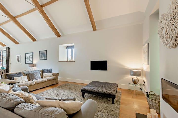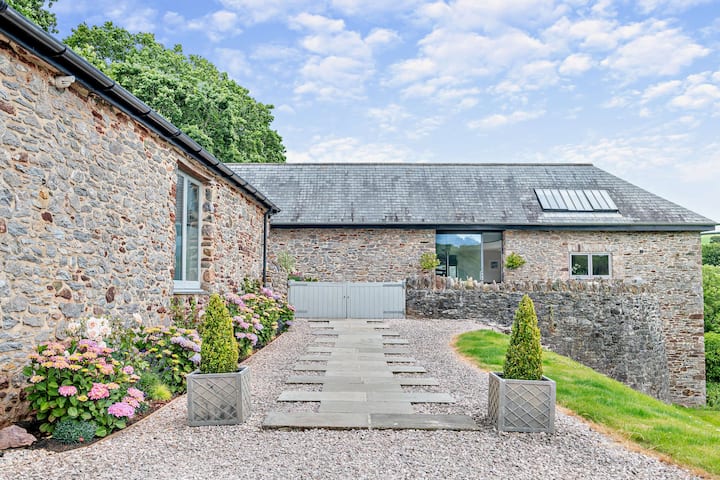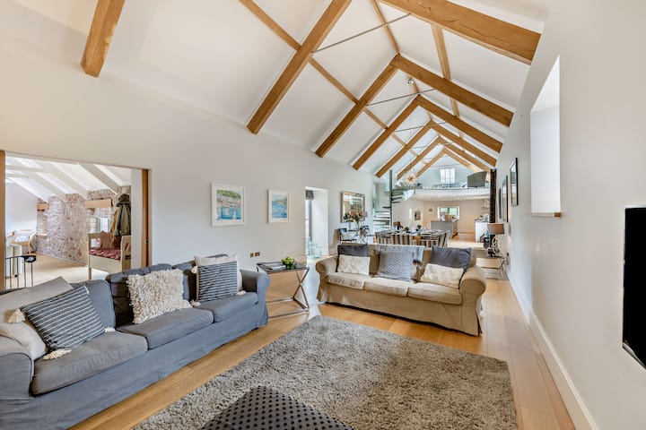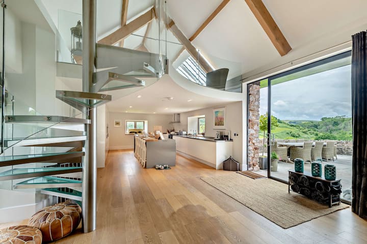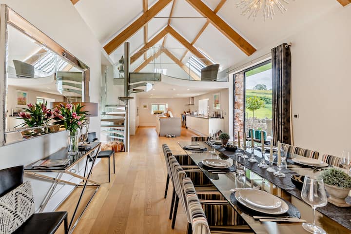 Gunstig genesteld in de glooiende heuvels van de Longcombe Valley, deze prachtig ontworpen grootse omgebouwde schuur ligt op 20 hectare en is het perfecte toevluchtsoord voor mensen die op zoek zijn naar iets unieks. Longcombe zelf zit in de buurt van het charmante stadje Totnes, dus het aanbieden van ansichtkaarten wandelpaden en de oor-tease geluiden van knisperende twijgen onder de voeten ogenblikken van je deur, het toevoegen van een sublieme achtergrond voor je idyllische Devon-uitje.