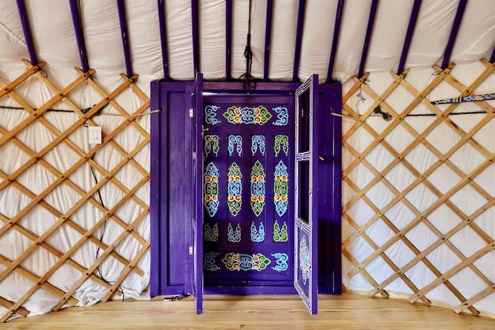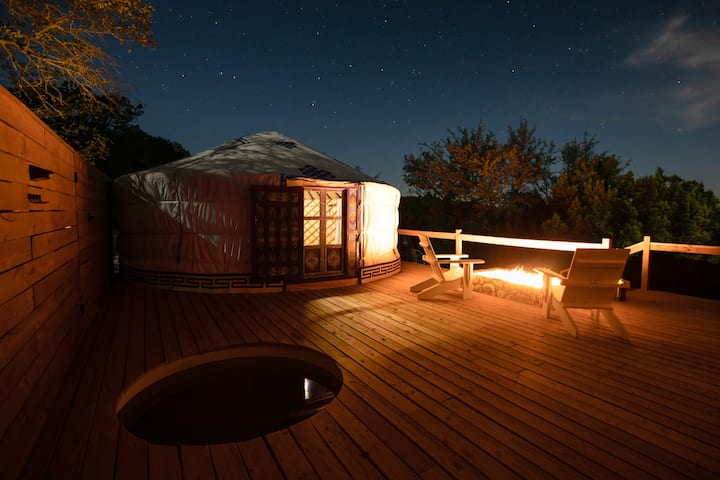 Afgelegen, romantische yurt met bubbelbad bij The Yurtopian