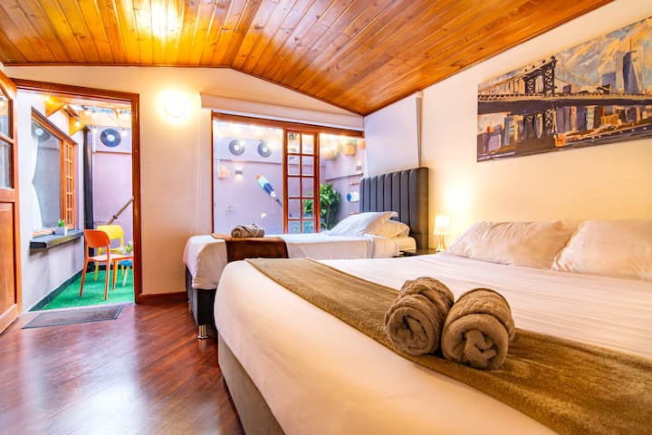 Zodra je een voet in dit Trending Artist House stapt, word je verwelkomd door een zeer stijlvol en toch zeer comfortabel leven. Het is ontworpen en gedecoreerd op een elegante manier die de koloniale sfeer van Bogota aanvult. Een plus kenmerk van het huis is slechts één begane grond van het hele complex (afgezien van de ene kamer die boven is). Alle rustruimtes van het huis zijn inclusief de geweldige jacuzzi op de begane grond (geen trap).
