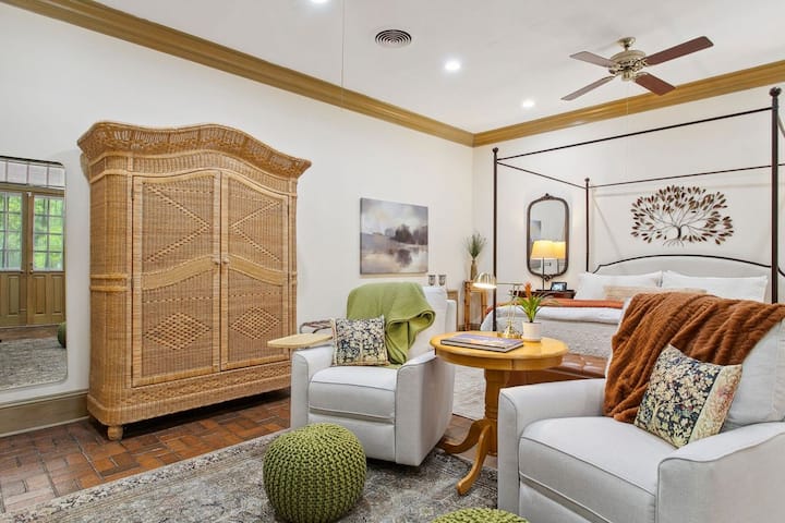 Ik ben een makelaar die een erkende woningbouwer en nationaal erkend huisplanontwerper was. Ik ben gefascineerd door historische architectuur en mijn specialiteit was het ontwerpen en bouwen van nieuwe huizen om ze er oud uit te laten zien. Mijn beroemdste klant is John Grisham, die zijn neo-boerderij in Oxford MS bouwde van plannen die ik heb ontworpen. Mijn huis is gebouwd in 1938 en het bijgewerkte pension in Acadische stijl waar je van zult genieten, is tientallen jaren later toegevoegd.