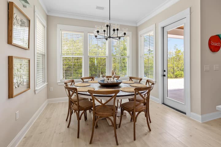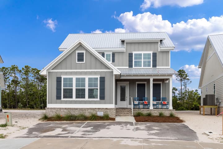 Nieuw op de markt voor vakantiewoningen! Schoon, fris en comfortabel! Welkom bij de GLOEDNIEUWE Summer Salt Cove Lot 25 op Pepper Lane in het prachtige Orange Beach, Alabama. Deze nieuwe vakantiewoning is smaakvol ingericht en ingericht in een elegante kuststijl. Het zal zeker de ogen behagen! Wees een van de eerste gasten die in dit uitnodigende verblijf aan de kust in het prachtige Orange Beach, Alabama, verblijft. Het huis biedt zeer comfortabel plaats aan acht personen. De eettafel biedt plaats aan 8 personen en de ontbijtbar biedt plaats aan 4 personen. De keuken is volledig gevuld met veel kookgerei dat nodig is om geweldige maaltijden en snacks te bereiden tijdens je vakantie. Koffieliefhebbers zullen het Keurig koffiezetapparaat waarderen. Geniet van de nieuwe stapelbare wasmachine en droger in de bijkeuken. Buiten de achterdeur is een overdekte buitenbank en 6 ontspannende loungestoelen om van te genieten. Alle slaapkamers zijn ingericht met gloednieuwe meubels en matrassen die je zeker zullen helpen ontspannen en opladen voor je volgende strandavontuur! Er is een halfbad/toilet op de begane grond waar jij en je gasten gebruik van kunnen maken. Dit prachtige vakantiehuis heeft ook GRATIS SNEL INTERNET voor jou en je gasten.