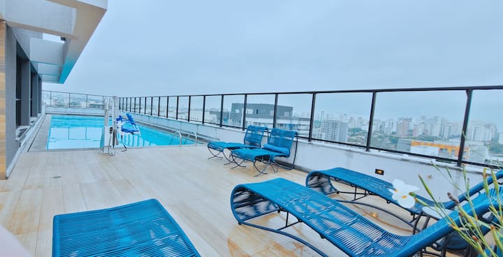 - Zwembad op het dak: ideaal voor momenten van rust na een drukke dag in de stad, maak van de gelegenheid gebruik om te genieten van het uitzicht op het landen en opstijgen van de vliegtuigen op de luchthaven Congonhas.