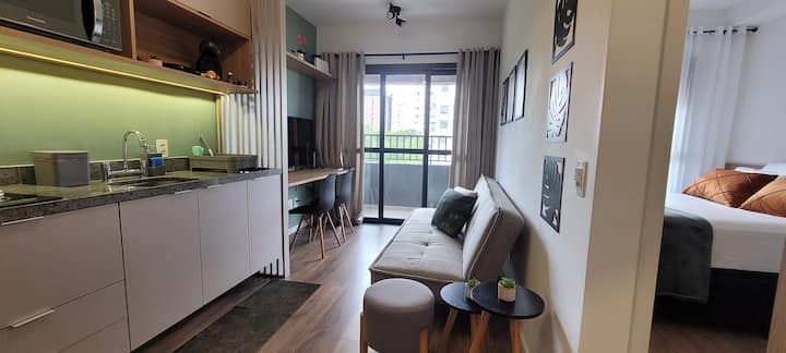 Beste locatie, 50 m van Shopping Ibirapuera, 400 m van Eucaliptos Station (Lilac-lijn), 2,5 km van Ibirapuera Park, 3,1 km van Congonhas Airport, omgeven door bars, restaurants en cafés.