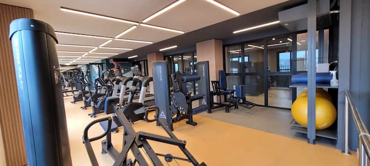 Fitnessruimte: perfect om je trainingsroutine te behouden, zelfs tijdens het reizen.