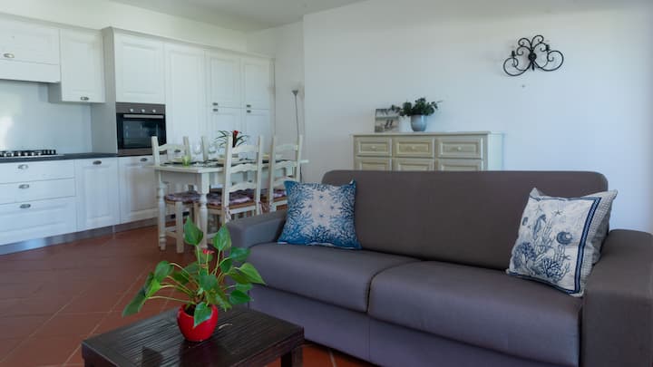 Zeer mooi appartement op één verdieping, omgeven door groen gazon met eigen buitendouche, op minder dan 100 meter van het dennenbos en de transparante zee van Baia Sant'Anna di Budoni. Het huis is nieuw ingericht en met aandacht voor detail. De belangrijkste diensten zoals restaurants, supermarkten en apotheek zijn gemakkelijk bereikbaar op een paar minuten rijden. De keuken is volledig nieuw en super uitgerust en alle voorzieningen aanwezig.