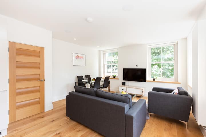 Geniet van een verblijf in het hart van het Londense Fitzrovia-gebied met dit ruime en moderne appartement van 50 vierkante meter op de 2e verdieping van een beveiligd woongebouw zonder lift. Zelf inchecken vanaf 15.00 uur door de sleutels op te halen bij een nabijgelegen winkel. Wifi is aanwezig, ideaal voor zowel werk als vrije tijd. Een restitueerbare borg is vereist, volledig in overeenstemming met het beleid van Airbnb.
