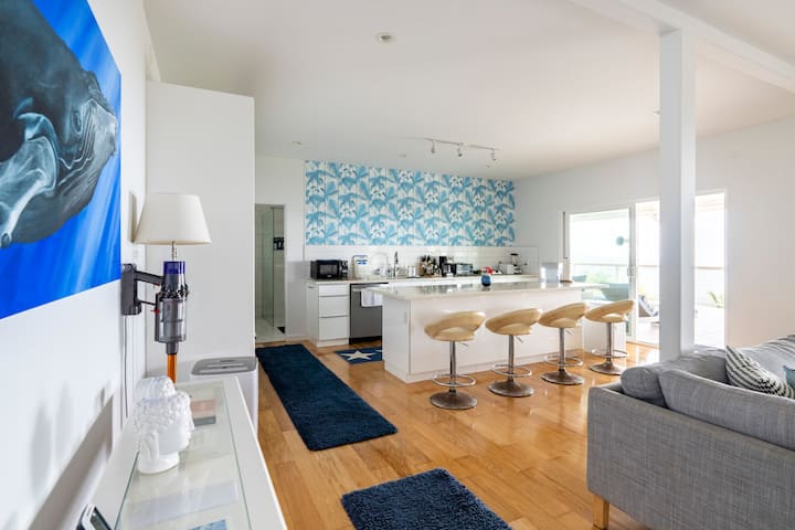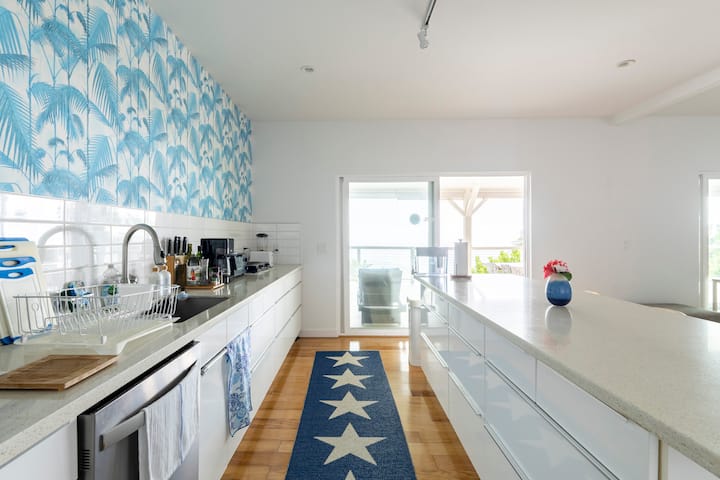Nieuwe LUXE woning met alles wat je nodig hebt, waaronder een prachtig uitzicht op de oceaan en de bergen. Het is 2300 vierkante voet (215 m ²) inclusief een overdekte lanai van 1150 m ². De twee slaapkamers met aangrenzende badkamers liggen op 30 voet van elkaar, waardoor elke slaapkamer zeer privé is. Er is een goede keuken, maar geen gewoon fornuis, maar een dubbele kookplaat. Er is een full-size koelkast en vriezer en vaatwasser.