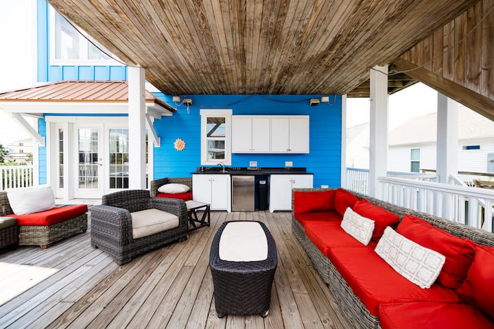 Op zoek naar een uniek uitje in de Atlantische Oceaan dat midden in ZOWEL de ICWW als het strand ligt, een zwevend uitzicht op ZEE heeft langs de toegang tot Virginia Ave Beach en minder dan een blok naar zee, zout en zand ligt? ""Paws. . . and RELAX!" Een PF-uitje in de wolken!"is misschien gewoon het Sandcastle waar je naar op zoek bent! Deze woning met 3 slaapkamers en 3,5 badkamers bestaat uit 2100 vierkante meter paalde binnen- en uitgestrekte buitenentertainment, waaronder een eigen hot tub, dekken voor dagen en eindeloze Pleasure Island-avonturen!