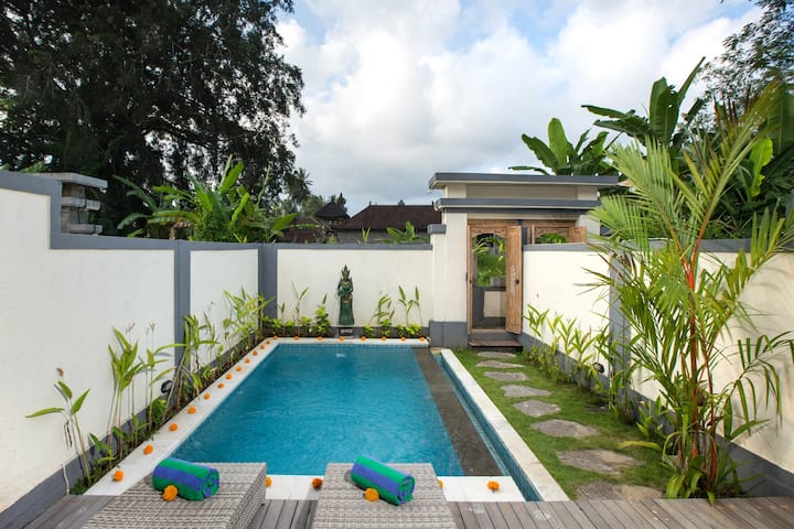 Genesteld gebied de weelderige rijstvelden en serene landschappen van Ubud, biedt een rustig toevluchtsoord voor diegenen die op zoek zijn naar ontspanning en verjonging. Dit Balinese oase is een harmonieuze mix van traditioneel design en modern comfort, wat zorgt voor een onvergetelijke ervaring voor veeleisende reizigers.